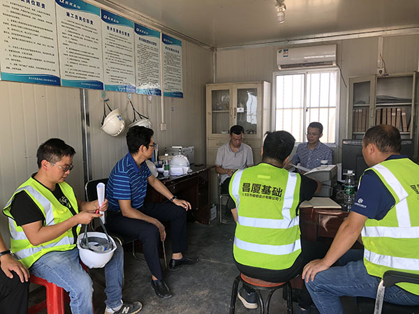 本次安全生產檢查,由公司總經理施木俊、副總工程師洪興全,基礎工程公司總經理于廣柏組成安全檢查小組,對基礎工程公司在建生產項目進行了全面的安全檢查。