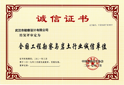 在公司領導和各部門的大力支持下,經過公司生產經營部精心的組織和認真準備,我公司順利通過中國勘察設計協會的復審,順利成為湖北省首批獲得“全國工程與巖土行業誠信單位”的企業。