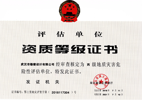 近日,湖北省國土資源廳發布了關于2018年度地質災害危險性評估和治理工程資質(新立、升級)審批結果的公告,公司地質災害危險性評估和地質災害治理工程勘查、設計、施工資質申請一次性順利通過國土資源部審核,并成功取得了資質證書。
